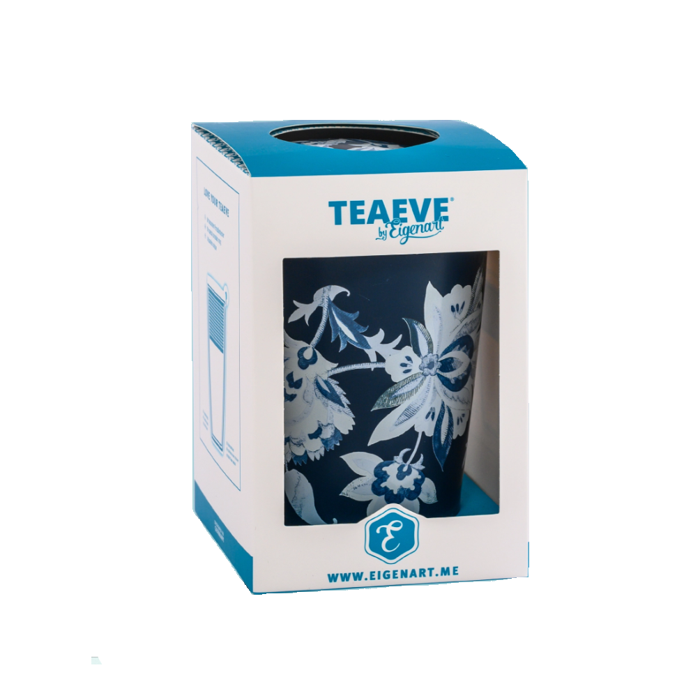 La Taza Teaeve Luna Azul de la marca Eigenart es una taza de doble pared de porcelana, con tapa, y que además incluye un filtro de acero inoxidable para preparar cómodamente tus infusiones preferidas.