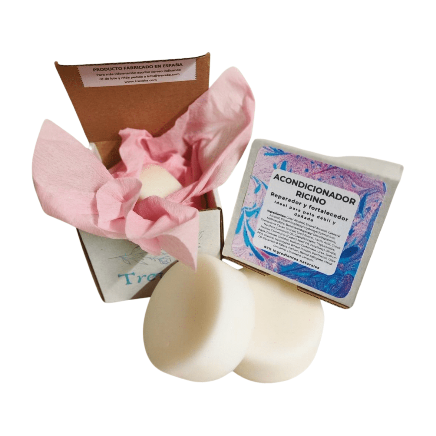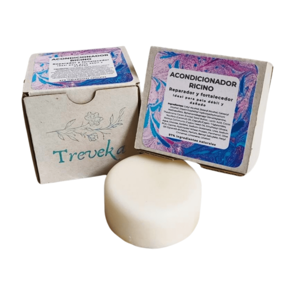 El acondicionador sólido ricino repara y fortalece el cabello cuidando el cuero cabelludo, Sin SLS, Ni parabenos.
