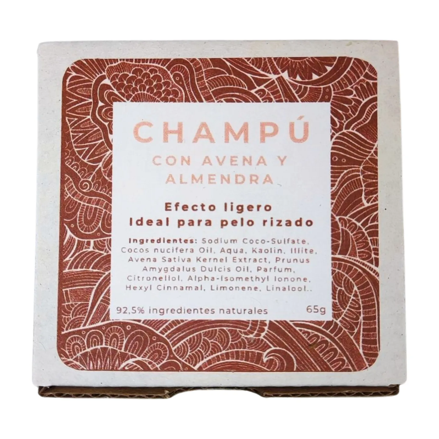 El principal ingrediente de los champús sólidos es el SCS, no usamos SCI ni SLS, un tensoactivo derivado del aceite de coco considerado natural por todas las certificadoras. También aceite de coco como acondicionador. Para aportar las propiedades buscadas para lavar el pelo rizado y para definir el rizo esta referencia tiene EXTRACTO DE AVENA Y ACEITE DE ALMENDRA.
