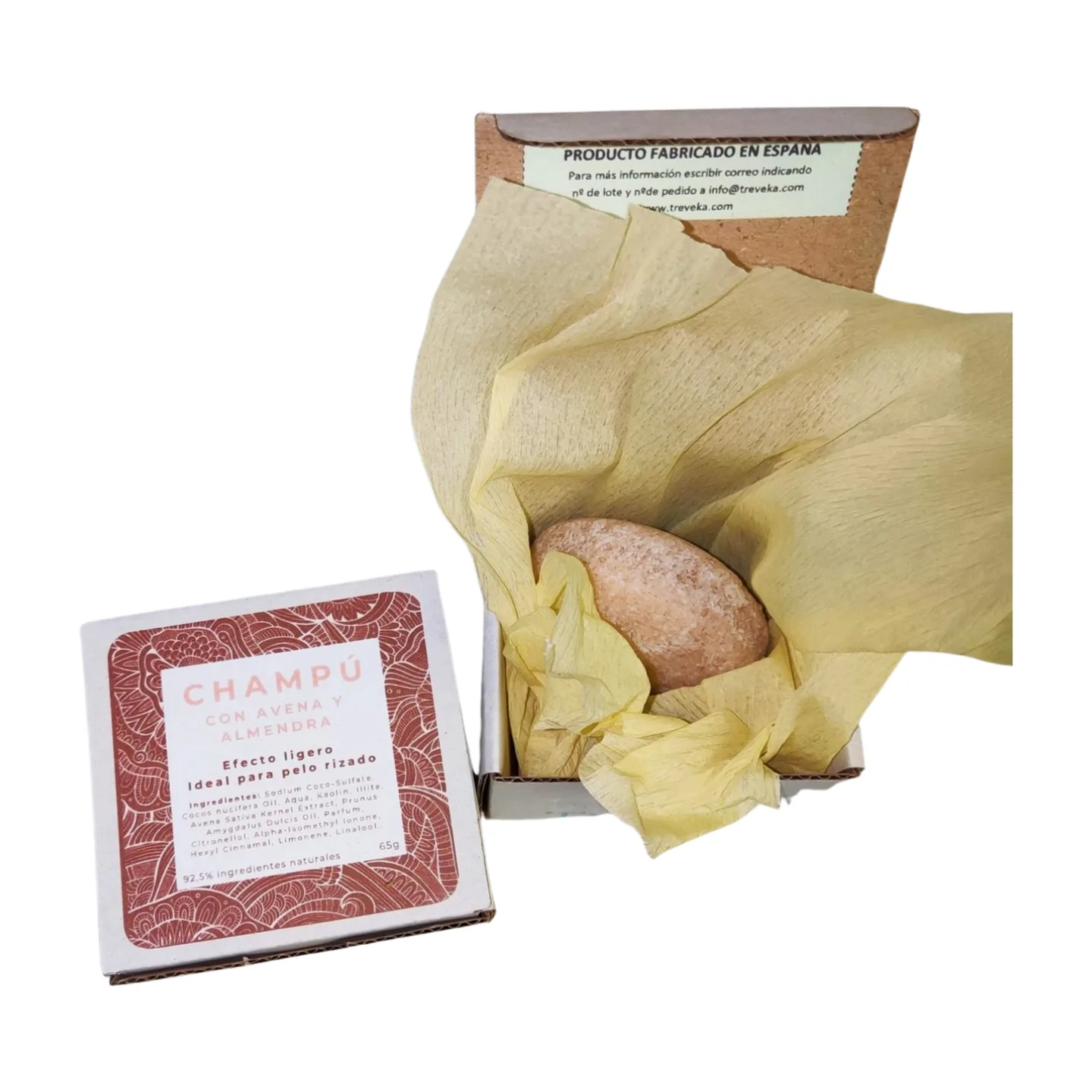Como toda la línea de champús sólidos, está hecho uno a uno en Zaragoza, no contiene SCI y puede ser Certificado como natural