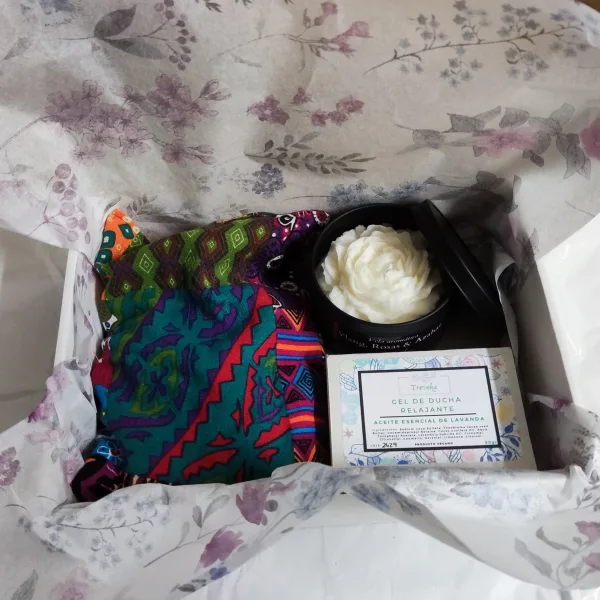 Pack relax es ideal para una relajación completa. Incluye un gel relajante de lavanda, un saquito terapéutico con semillas y lavanda, y para completar el momento de relajación una preciosa vela con forma de rosa y un aroma embriagador.