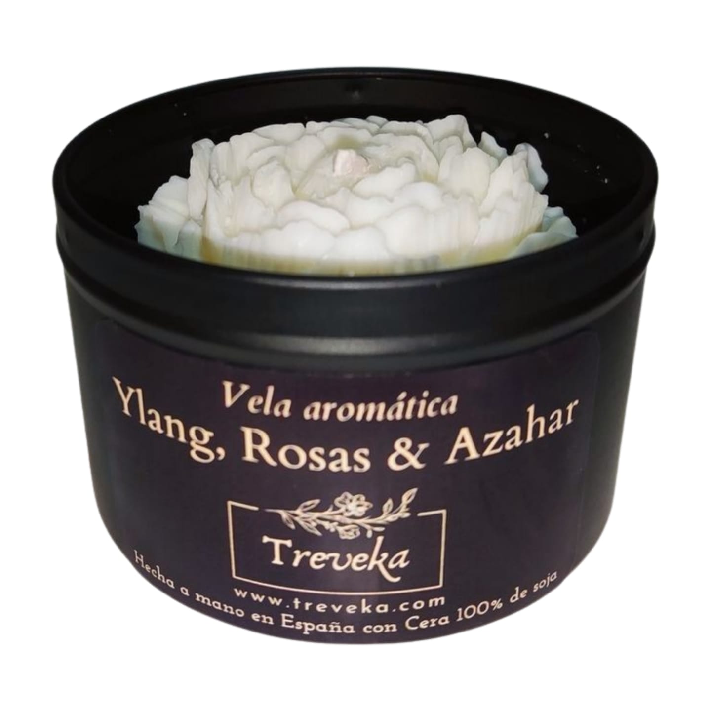 La vela aromática Ylang, Rosas & Azahar viene en una bonita caja metálica con tapa, en un elegante acabado negro mate para que combine a la perfección con cualquier decoración. Además una vez que la vela se consuma podremos limpiar los restos y utilizar la cajita para guardar cosas o simplemente para decorar, y en caso de no querer reutilizar la cajita este material es 100% reciclable.