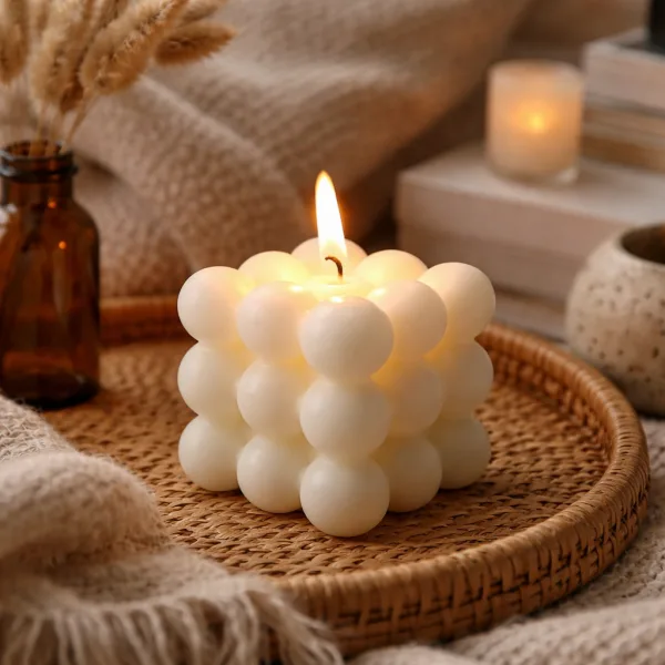 Nuestra Vela Bubble Natural de Soja es una vela artesanal decorativa de diseño moderno y minimalista, elaborada a mano con cera de soja 100% vegetal, sin perfumes ni colorantes añadidos. Su tono marfil natural y su forma de burbujas la convierten en una pieza elegante y atemporal, perfecta para aportar calidez y estilo a cualquier espacio.