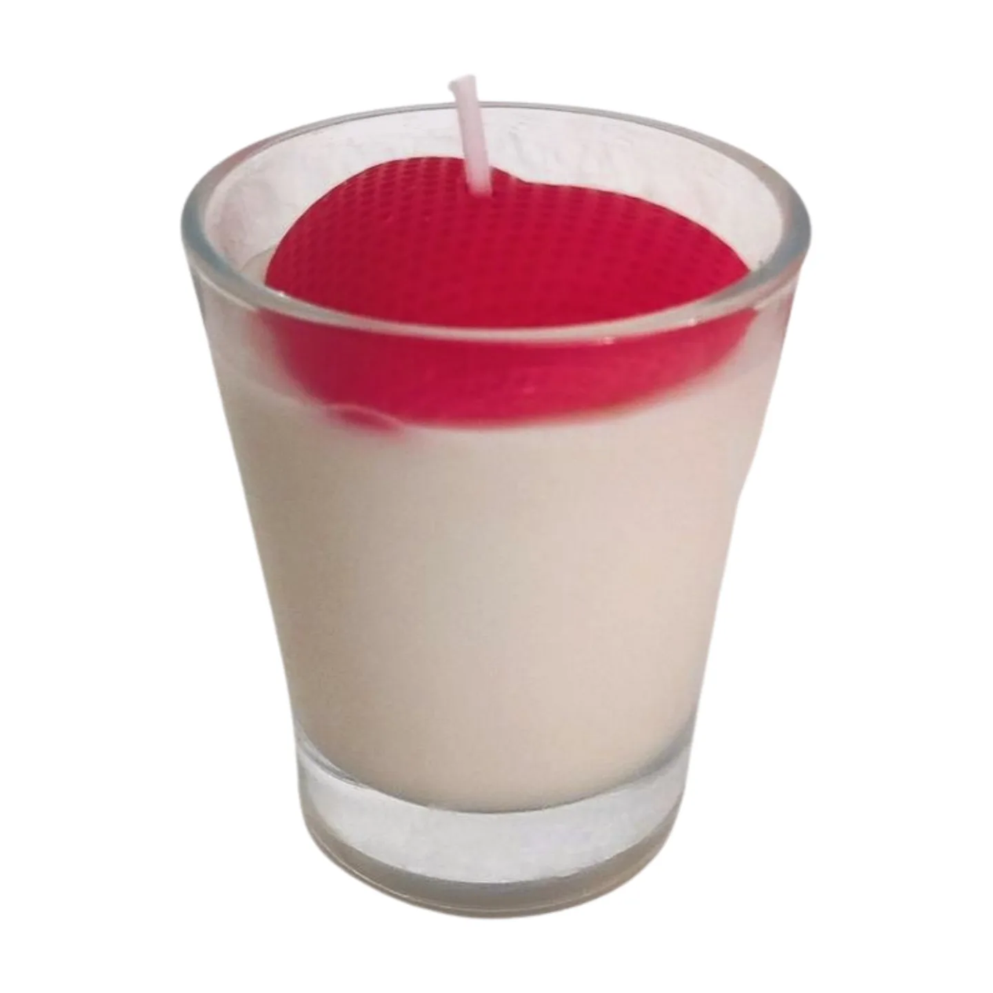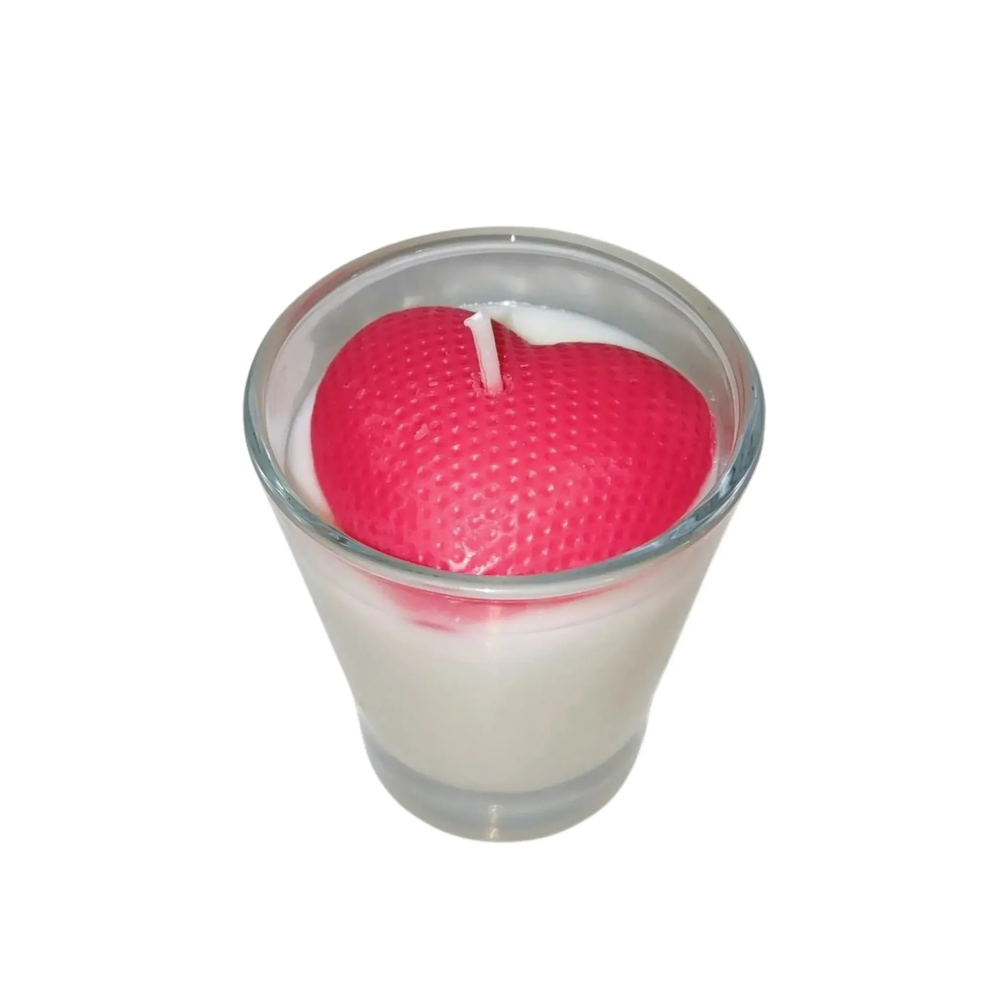 Su diseño se corona con un precioso corazón de cera en tono rosa, mientras que el resto de la vela incorpora un sutil toque de mica color champagne, que aporta un brillo nacarado suave y sofisticado cuando la luz lo atraviesa.